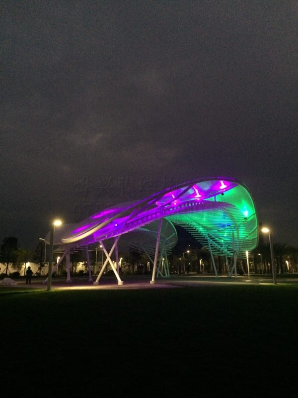 深圳燁興膜結構,到2016年已專注膜結構12年,鋼結構16年,擁有設計與施工雙一級資質的專業團隊,且為中國膜結構會員。燁興從事膜結構設計,制作,施工為一體,擁有自己的鋼結構工廠和膜結構加工廠,為您專業設計獨屬于您的膜結構藝術景觀。