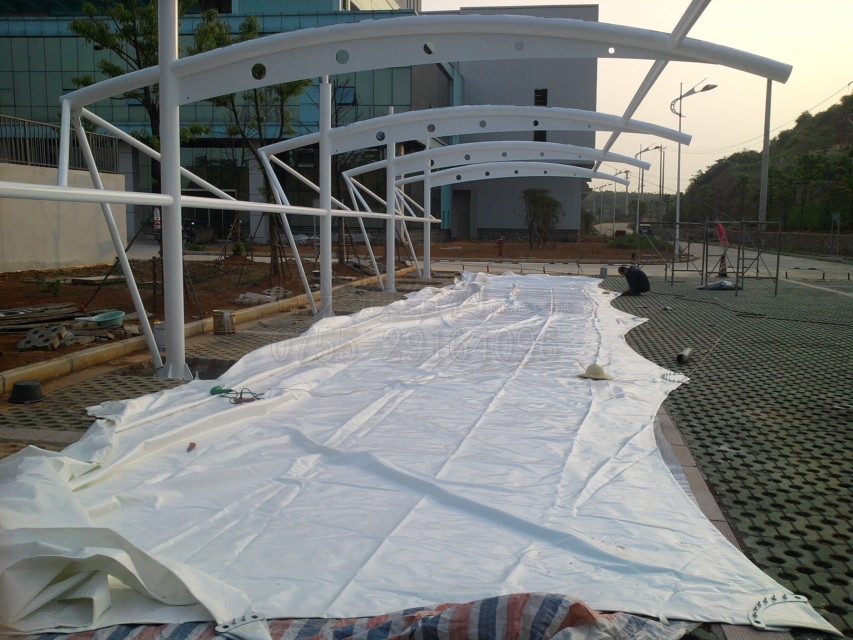 總之,下雨天不建議膜結構工程正常施工,為了不耽誤工期,雨天可以在室內對鋼結構部分進行預加工(最好是放在專業的鋼結構加工廠進行),等天氣晴朗時再拼接安裝。