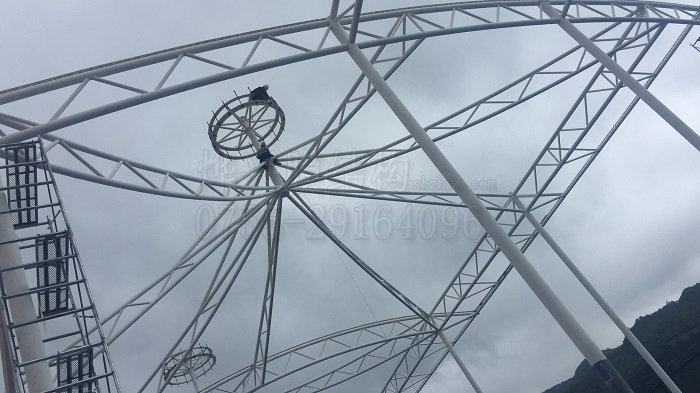 現場工人正在高空安裝螺栓,為膜材張拉做準備