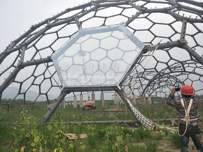 ETFE膜材既薄且透,材質柔軟,無論單層使用還是加工成氣枕形式,都需要高強度的支撐結構。為了使ETFE膜結構建筑看起來更有藝術美感,一般是用泰森多邊形法來設計ETFE膜結構單元的形狀和排布。將膜結構單元加工完成以后,安裝工序能否做好,關系著整個工程的美觀程度及工程質量。