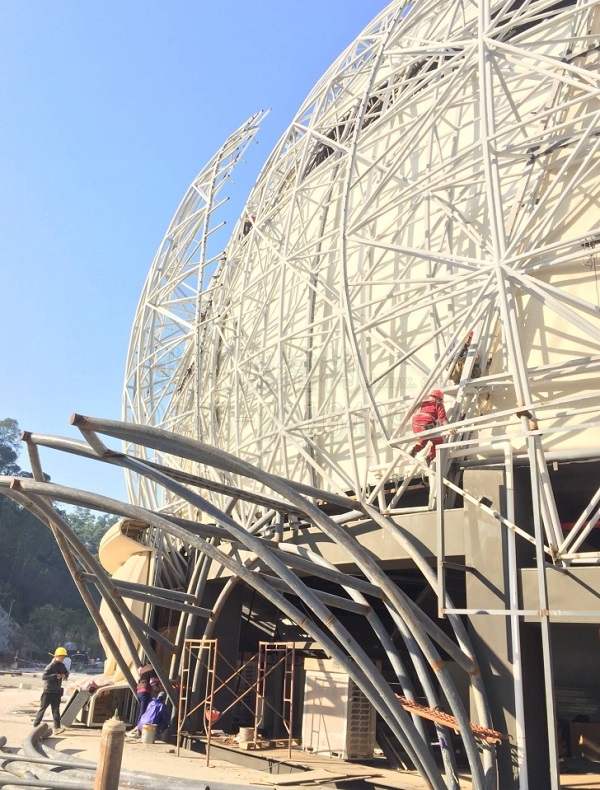燁興云浮蓮花劇場(chǎng)PTFE膜結(jié)構(gòu)項(xiàng)目已經(jīng)進(jìn)入最后的裝膜階段,但前期全國性降溫引發(fā)的雨雪天氣,對(duì)項(xiàng)目的工期造成了一定延誤,為了工程能在規(guī)定的時(shí)限內(nèi)按時(shí)完工,目前公司將資源都暫時(shí)傾注,項(xiàng)目進(jìn)入沖刺趕工階段。