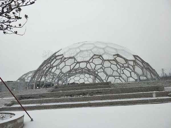 目前比較流行的設計是,用輕盈的ETEF和厚重的鋼結構進行搭配使用,這樣能產生非常美妙的建筑效果。尤其是在沿海季風地區,設計的建筑都要考慮抗風,所以我們看到的ETFE膜結構建筑,一般骨架鋼結構都做得十分粗大牢固。在臺風風力不能撕裂ETFE膜材的情況下,支撐結構足夠牢固,那臺風就不能直接破壞這個建筑。