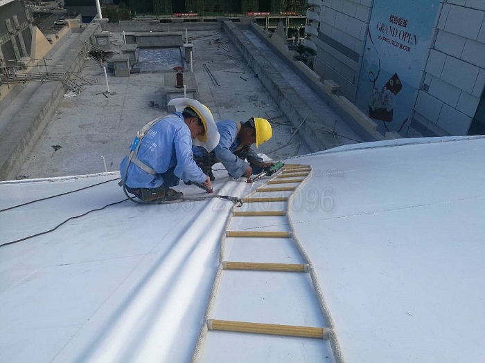 在我們施工的過程中,臺風(fēng)、連續(xù)降雨天氣頻繁出現(xiàn),對正常施工造成了較大影響。值得高興的是,只安裝部分膜材的半成品工程經(jīng)受住了臺風(fēng)的考驗——鋼構(gòu)堅固、裝膜牢靠、安全;我們的工人隊伍也克服了惡劣天氣帶來的影響,按照施工計劃穩(wěn)定推進(jìn)了工作進(jìn)度。