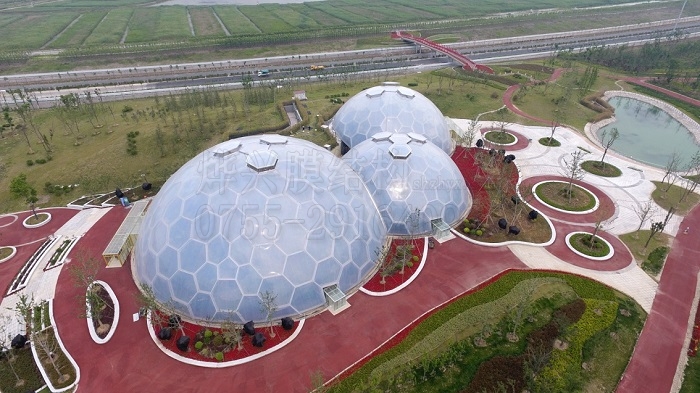 如圖是燁興公司設計建設的ETFE膜結構熱帶植物科普展覽館