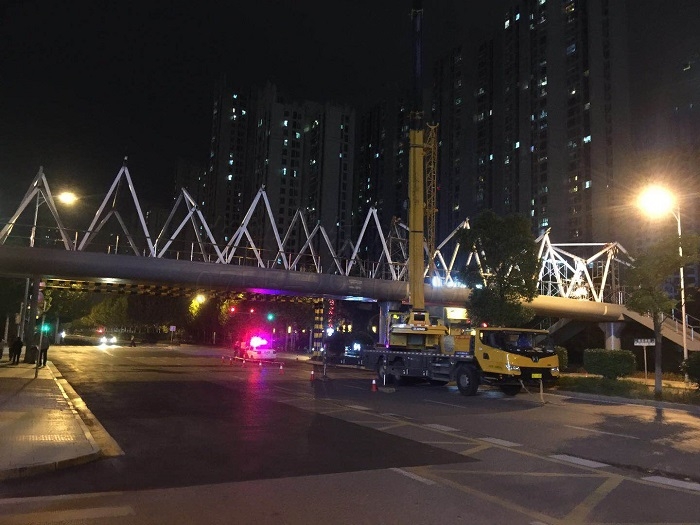 由于天橋橫跨城市主干道,白天過往車輛、人流非常多,白天既不能占道影響交通,也要防止施工過程中有落物掉落砸到過往行人車輛,我們只能將主要施工時段集中到凌晨人車較少的時候進(jìn)行施工作業(yè)。夜晚連續(xù)施工既考驗(yàn)技術(shù)實(shí)力,對人員的綜合素質(zhì)也是極大考驗(yàn),但為了早日讓長沙城出現(xiàn)我們的膜結(jié)構(gòu)天橋風(fēng)景,我們燁興人不怕克服任何困難。