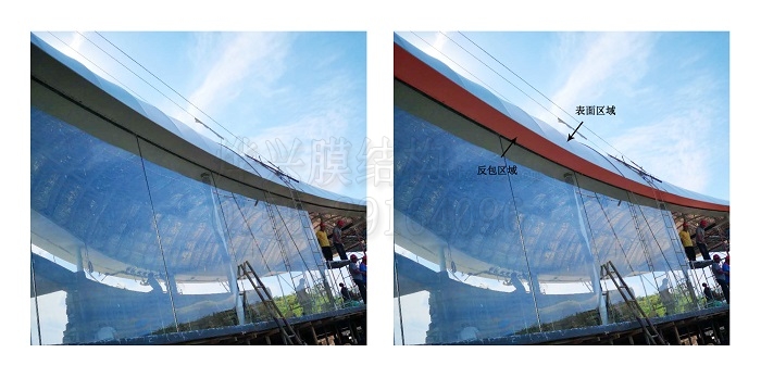 難點二:整體膜表面需無褶皺及膜單元連接處不漏任何金屬連接件,且過度平整。(如下圖)