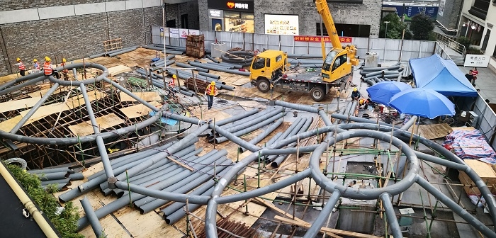 杭州湖濱銀泰廣場ETFE膜結構雨棚建設近況