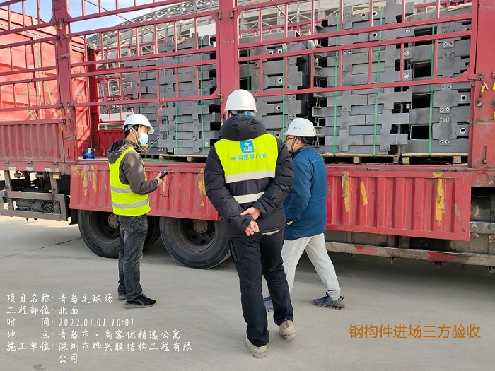 燁興公司是亞洲杯青島青春足球場項目的參建單位,負責主場館ETFE膜結構部分的深化設計及施工安裝。根據派駐現場的項目經理反饋,近期我們的膜單元樣品已經驗收通過,目前正在進行二次鋼構部件的加工安裝,鋁型材支架及ETFE膜原材料也備好在工廠,隨時準備加工出貨,春節年后工程將迎來快速施工周期。