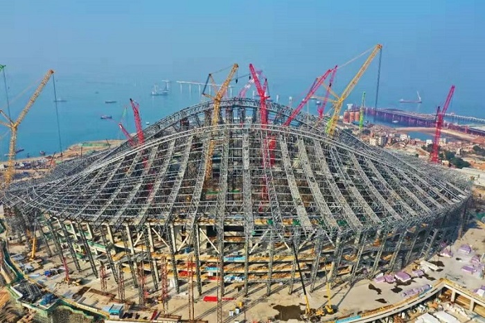 近日,備受社會各界關注的2023年亞洲杯場館--廈門新體育中心項目白鷺體育場屋蓋鋼結構全部吊裝完成,實現了總重約3萬噸的屋蓋鋼結構合龍,這標志著項目建設進入膜結構屋面安裝的全新沖刺階段。