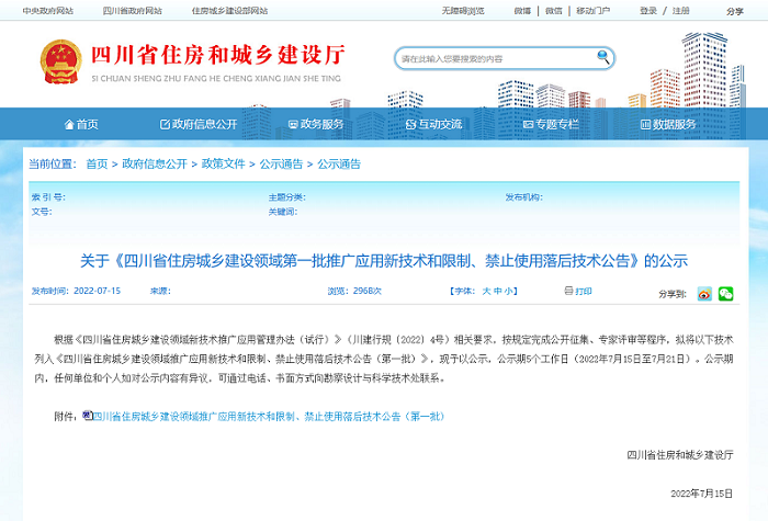 2022年7月15日四川省住房和城鄉建設廳 發布《四川省住房城鄉建設領域推廣應用新技術和限制、禁止使用落后技術公告(第一批)》,ETFE膜結構施工技術入選十八項推廣應用中的工程質量安全技術,位列十四,同期入選的膜結構相關技術為大開口索穹頂施工關鍵技術,位列第九。